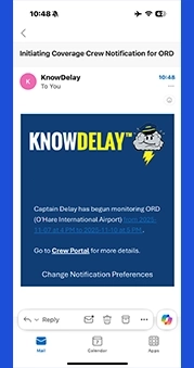 “KnowDelay helped me decide to drop trips and snag a premium trip in the midst of the ORD snow event/shutdown. I love the OIS status emails also.”